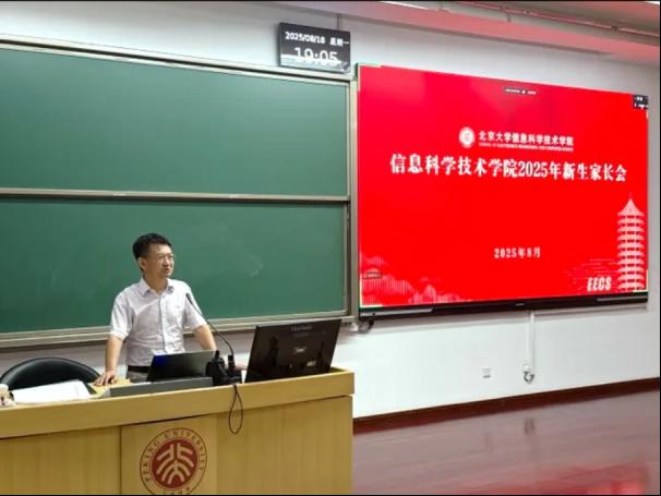 在同学们即将开启“信科之旅”之际,侯士敏代表学院全体师生,向年轻的信科学子表示热烈的欢迎和衷心的祝贺。侯院长着重强调了信息科学技术在未来的重要作用以及发展前 景,对新生们提出三点期望:一是立大志,新生要树立远大志向,解决社会真问题,创造人类真价值,将个人理想融入国家伟大复兴的旅程;二是做唯一,在北大进行一场深刻的自我发现之旅,保持自己的独特,避免千篇一律的优秀者,成为独具锋芒的创造者;三是终身学,要养成终身学习的好习惯,以谦逊之心拥抱新知,锻炼深耕定力,永怀为人类福祉奋斗的赤子之心。
