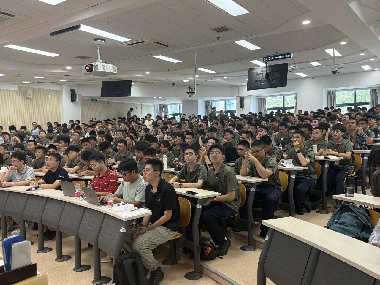 同时,侯院长还围绕科学研究、产业实践、学术交流和文体活动等方面,为新生们描绘了一幅立体多彩的大学生活画卷。他鼓励同学们不仅要勇攀科学研究的高峰,也要积极参与产业实践,将理论与实际相结合;既要通过广泛的学术交流拓宽国际视野,也要在丰富多彩的文体活动中强健体魄、熔炼团队精神,实现全面发展。