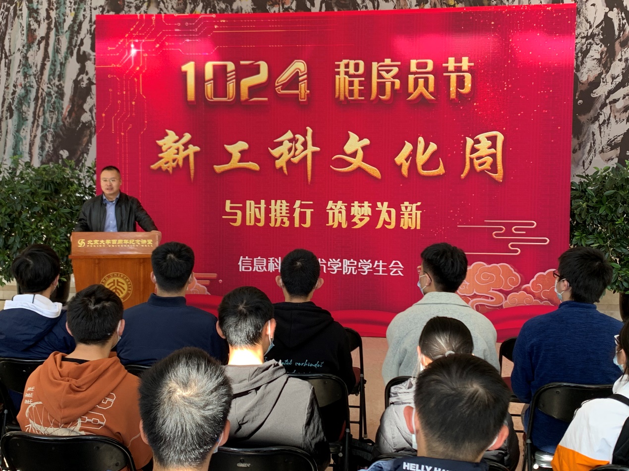谢冰首先阐述了1024的意义。他指出,1024不仅仅指10月24日的程序员节,更蕴含了与信息科学密切相关的二进制体系,代表了当今信息化时代。谢冰老师结合自己的科研经历,对“新工科”的含义进行解析,他指出,“新工科”的含义可归纳为两方面,一是以信息科学为代表的新兴工科学科,二是借助信息技术助力传统工科转型。接着,谢老师借哲学的人生三问:我们是谁、我们来自哪儿、我们要去哪,阐述了关于程序员身份定位的思考。
