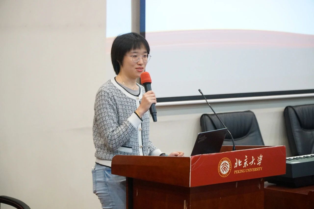 动员大会之后,林汇平带领大家进行了合唱发声练习。从最基础的呼吸与发声方法,到分声部的和声练习,再到简单音阶的开嗓环节,每一个步骤都由浅入深地讲解,同学们听得津津有味,并逐渐掌握了美声唱法的发声技巧。她不断地给出具体的示范,并逐一纠正大家的发声方式,帮助他们找到最合适的共鸣点。她还指导大家如何识别和跟随指挥手势,带领大家合力演绎了《送别》和《燕园情》这两首经典曲目。她特别强调了在合唱中倾听彼此的重要性,提醒大家在歌唱时保持节奏的一致和情感的表达。