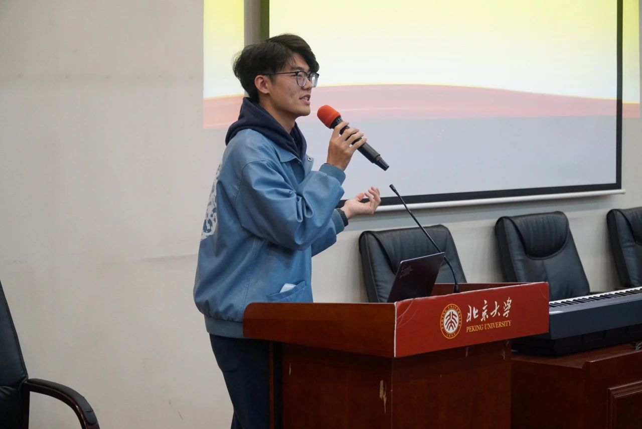 接着,舞台组负责人顾晨阳为大家介绍了舞台组的工作要求。他有着丰富的舞台管理经验,讲话简短而风趣,让大家在轻松的氛围中了解了舞台组工作的多样形式和独特要求。他特别指出,只有舞台表演与合唱歌声有机融合,才能打造出一台完美的演出,真正打动观众的心。后勤组负责人王熙理介绍了后勤组的工作职责。他鼓励后勤组的同学积极参与到活动的各个环节中,默默地在幕后付出努力,确保所有工作顺利进行。他号召后勤组全力以赴,为大家提供最完善的后勤保障,助力同学们的排练如虎添翼、事半功倍。相信在后勤组的努力下,大家一定能安心排练,共同实现歌会的圆满成功。
