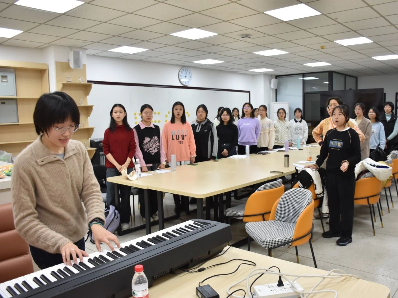 京城的秋,恰似一幅色彩斑斓的油画,金黄的银杏叶宛如璀璨的碎金,铺满了宁静的校园。教学楼的回廊里,不同声部的成员们汇聚一堂,他们用独特的气息和悦耳的声音,精心绘制出一幅名为 “青春由我” 的壮丽画卷。男低音仿若广袤无垠的大地,深沉而厚重,每一个音符都似大地的脉搏在跳动;男中音恰似雄伟挺拔的山峰,坚定而不可动摇,那雄浑的声音承载着如山般的力量;男高音则如直插云霄的高峰,激昂的旋律似要冲破云端,向着天空呐喊;女声就像清晨破晓的第一缕晨曦,温暖而柔和,为这画卷增添了一抹绚丽的色彩。