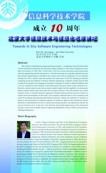主讲人:Prof. Dr. Carl K. Chang, Iowa State University, USA