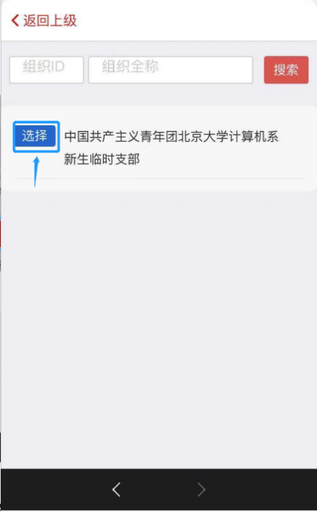 5.找到需转入支部,点击前面的“选择”键。