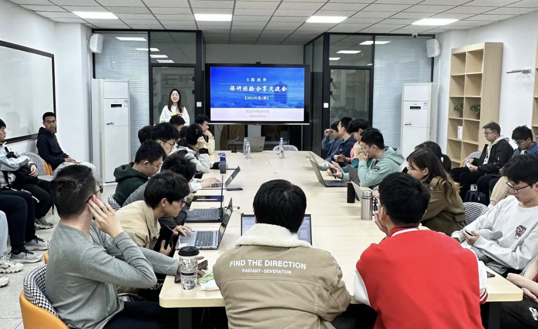 2024331日下午,成人网站 学生工作办公室组织“E路相伴”系列主题活动,保研经验分享交流会在理科一号楼1127学生活动室成功举行。交流会邀请到电子学院秦昊、计算机学院郝泽成、集成电路学院张桃和智能学院李鸿泽担任分享嘉宾。活动由学工办学生助理兰茜丹主持。学院学工办主任李子奇和就业办付晓倩参加了活动。