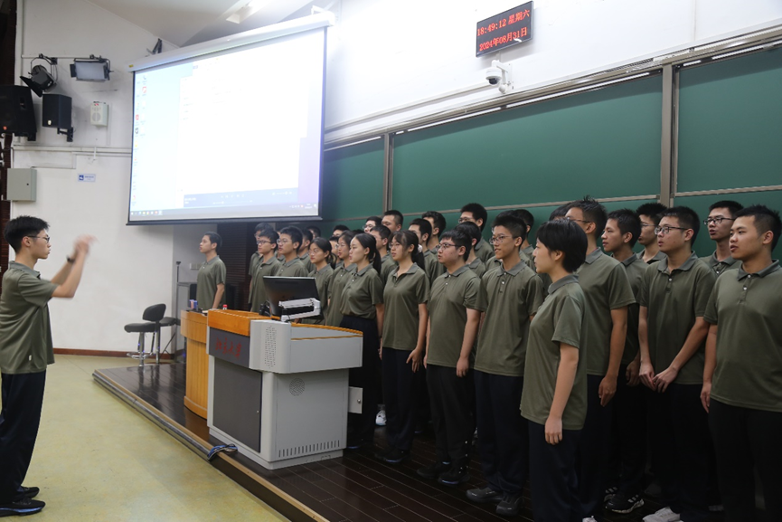 2024 级本科生军训结训仪式在二教101教室隆重举行。学院院长侯士敏,党委副书记贾方健,学生工作办公室主任李子奇、副主任崔玥,学院团委副书记刘天怡和各班级领队教师和带班辅导员以及2024级全体参训学生参加活动。仪式由学院团委书记吕媛主持。