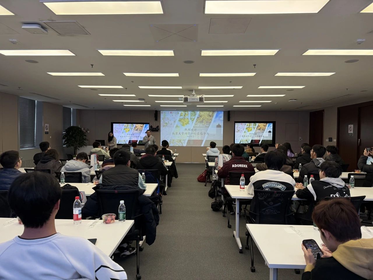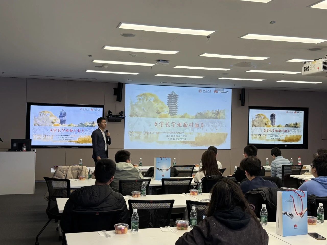陈牧歌和伏臻从自身经历出发,着重与同学们分享了在华为的工作体会及华为企业的核心价值观,为同学们职业发展提供指导。