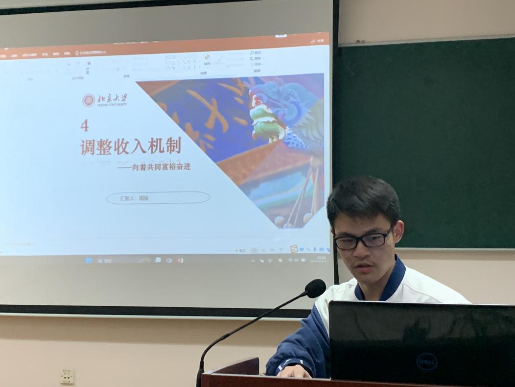 第二党小组孙家兴、周骏等几位同志围绕关键词“收入”,进行坚持按劳分配为主体,多种分配方式并存、增加低收入者收入,扩大中等收入群体、保护合法收入,调节过高收入,取缔非法收入、调整收入机制,向着共同富裕奋进四个方面的介绍。二十大报告中强调收入的变化鲜明体现了党为人民服务的宗旨。