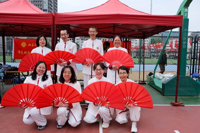 开幕式上,学院8位老师参加了学校“燕园功夫扇”的团体操表演。他们身着统一的白色练功服,伴随着音乐的节奏,动作整齐划一,赢得了在场观众的阵阵掌声。