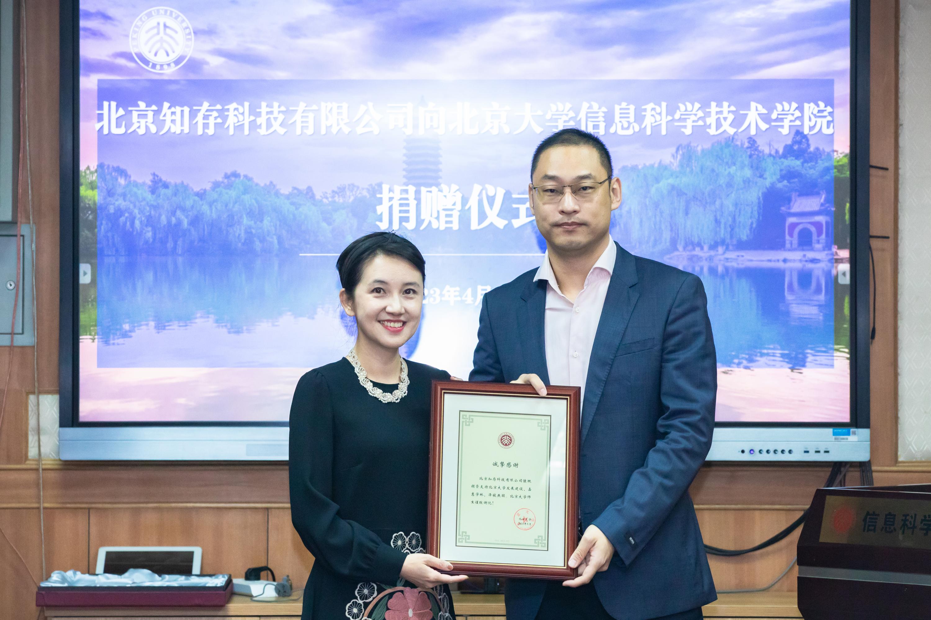 在人才培养、科学研究和社会服务等领域不断追求卓越、造福人类。优秀的学生,一流的学术,热情的校友,共同组成了温暖的北大。希望在知存公司的支持下,信科师生能够充分发挥才华和创新能力,为学院发展增添更大动力,也期待知存公司的校友朋友们持续关注北大,进一步建立深厚的友谊。