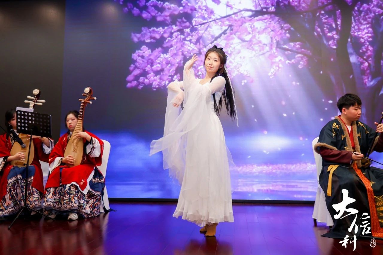 庞湫凡、孙嘉旋、肖贝儿、杨睿来四位同学表演舞蹈《Drama》,成员们在舞蹈中展现了极高的技巧和力量,每个舞步都显得精准而富有力量。黄溢乐、方于银等八位同学带来的民乐串烧《象王行+浮光》恢宏大气的曲调和细腻的情感表达直击人心。