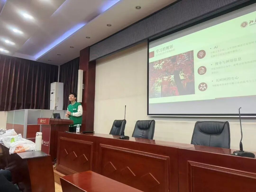 23级图灵班的卢宇宸以“大学学习思维”为主题,鼓励同学们寻找学习搭子、善用碎片时间,并强调“科学上课”的关键在于找到适合自己的听课方式,及时消化知识。