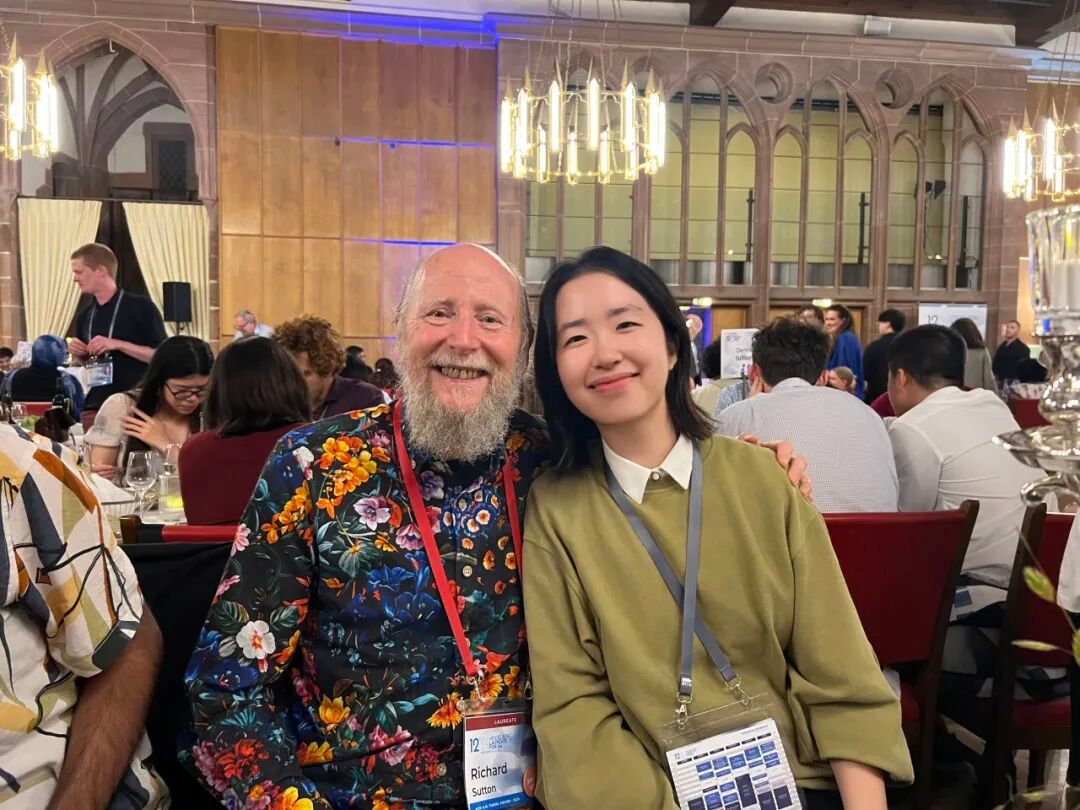 Richard的博士生也参加了本次论坛,他毕业后在导师创立的Keen Technologies从事基于强化学习的AGI研究,具体内容是让机器人在自制游戏世界中通过手柄探索学习,同样属于“从经验中学习”的范畴。茶歇期间遇到的青年学者研究方向各异,交流最引人入胜之处就在于看不同学者如何选定自己的研究问题。譬如David希望避免引入先验知识,通过持续学习实现机器智能;而一位华裔助理教授为实验室确定了“大语言模型的认知研究”的大方向(涉及多智能体、因果推断与可解释性)。与学者们交谈,最直观的感受是他们思维的锐利。